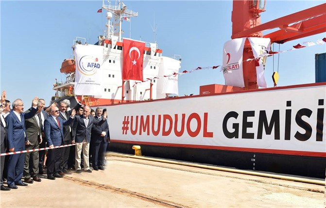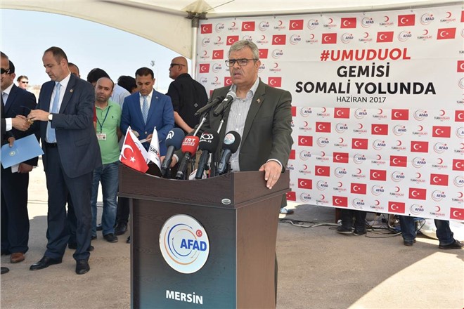Konuşmasının devamında, Cumhurbaşkanımız Sayın Recep Tayyip Erdoğan’ın alicenaplığı ile “Umudu Ol” ismiyle başlatılan yardım kampanyası kapsamında çok kısa süre içerisinde binlerce ton gıda malzemesinin gönderime hazır hale getirildiğinin bilgisini veren Vali Özdemir Çakacak; konuşmasını Kızılay, AFAD, TİKA ve çeşitli yardım kuruluşlarının katkısı ile hazırlanan 13 bin tonluk temel gıda malzemesinin bugün Mersin’den uğurlanıyor olmasından büyük bir mutluluk duyduklarını ifade ederek noktaladı.