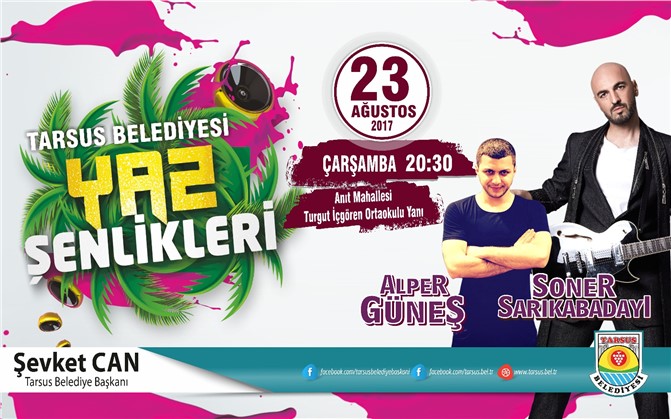 Yaz döneminde bir çok mahallede Yaz Şenliği gerçekleştirdiklerini ifade eden Başkan Can, Anıt Mahallesi’nde düzenlenecek olan Alper Güneş ve Soner Sarıkabadayı konserinde Tarsuslularla gönülleri birleştirmeye devam edeceklerini ifade etti.6’ncisini düzenledikleri ‘Yaz Şenlikleri’ne bütün Tarsusluların davetli olduğunu belirten Başkan Can, “23 Ağustos 2017 Çarşamba günü saat 20.30’da Anıt Mahallesinde Turgut İçgören Okulu yanındaki Alper Güneş ve Soner Sarıkabadayı konserimize bütün vatandaşlarımız davetlidir” şeklinde konuştu.