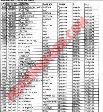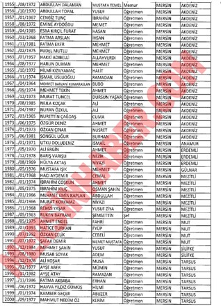 Buna göre TRT’den 1 kişi, İl Jandarma Komutanlığı’ndan 6 kişi ihraç edildi. Mersin’de toplam 81 öğretmen de ihraç edildi. Buna göre: (NOT: AŞAĞIDAKİ LİSETE RESMİ GAZETEDEN ALINMIŞTIR)