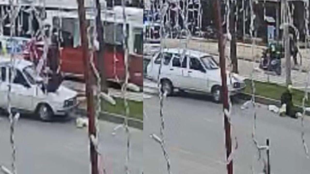 Kaza anı ise güvenlik kamerasına saniye saniye yansıdı. Görüntülerde yaya geçidinin geçen kişiye ilk olarak bir motosikletin yol vermediği ardından gelen otomobilin ise çarptığı anlar yer aldı.