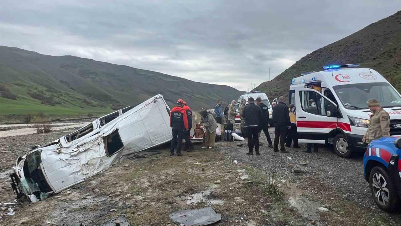 Muş-Bulanık kara yolunda yolcu minibüsünün dere yatağına devrilmesi sonucu 16 kişi yaralandı.