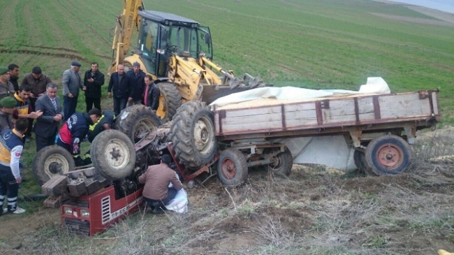 Yozgat’ın Sorgun ilçesine bağlı Çiğdemli Beldesi'nde yaşanan kazada, 55 yaşındaki İsmail Sezen yönetimindeki 66 DK 131 plakalı traktör, sürücünün kontrolünü kaybetmesiyle tarlaya devrildi. Traktörün altında kalan Sezen, olay yerine gelen Sorgun belediyesi itfaiye ekipleri ve iş makineleri yardımıyla sıkıştığı yerden kurtarıldı. Daha sonra Sorgun Devlet Hastanesine kaldırılan çiftçinin tedavi altına alındığı bildirildi. Kaza ile ilgili olarak soruşturma başlatıldı.