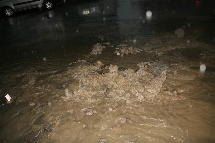 Yozgat'ta akşam saatlerinde başlayan şiddetli yağmur, yolları göle çevirirken, kanalizasyon rögarları taştı.