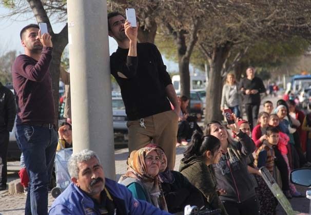 Yoldan elektrikli bisikletiyle geçen bir vatandaşın da durup hem bu anı çocuğuna izletmesi hem de telefonu ile görüntülemesi herkesi hayrete düşürdü.