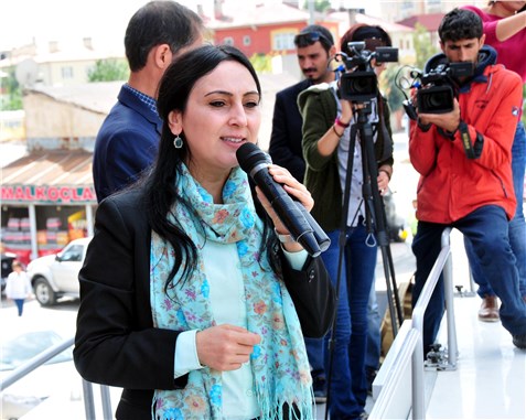 HDP Eş Genel Başkanı Figen Yüksekdağ seçim bölgesi olan Van’da dünden beri çeşitli kurumları ziyaret ettikten sonra bugün miting düzenledi. Eski İtfaiye Meydanı'nda yapılan mitinge Van Büyükşehir Belediye Başkanı Bekir Kaya, HDP Van Milletvekili adayları ve vatandaşlar katıldı. Seçim otobüsü üzerinden halka seslenen Eş Genel Başkan Figen Yüksekdağ, Vanlıların verdikleri sözü bir kez daha tutacağına inandığını belirtti. Yüksekdağ, "1 Kasım seçim kampanyasını ölümle yapanlara karşı, yaşamla, direnişle barışla yapacağız. Onlar ilk kurşunu sıktıklarında ve çözüm süreci masasını devirdiklerinde zaten yenilmişlerdi. Bizim 7 Haziran'daki başarımızı hazmedemeyenler, ülkeyi kaosa, siyasi krize soktular. Çok büyük bir savaşın fitilini ateşlediler. Biz helal yollarla kazandık. Kaybetmeyeceğiz. Ama siz haram yolla kazandınız, bu kez kazanamayacaksınız." diye konuştu.