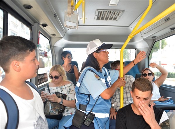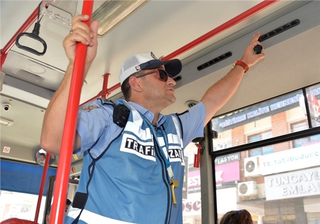 Toplu Taşıma Araçları Yönetmeliği kapsamında yapılan denetimler sırasında, sivil olarak toplu taşıma aracında seyahat eden Zabıtalar, sürücünün araç içerisindeki kural ihlallerini ve klimasının çalışıp çalışmadığını yaka kamerası ile kayıt altına alarak, belirlenen noktalarda bekleyen Zabıta ekiplerine bildiriyor. Zabıta ekipleri aracı durdurarak, sivil Trafik Zabıta ekibini araç sürücüsüne ve yolculara tanıtıyor. Araç sürücüsüne yaptığı hataları anlatan ekipler, sürücüyü uyarmalarının ardından gerekli yasal işlemi uyguluyor.
