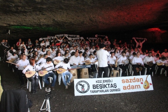 Daha önce Michael Jackson’un ölüm yıl dönümünde 'They Don’t Care About Us' adlı şarkıya klip çeken Sazdan Adam Grubu, bu sefer Beşiktaş taraftarlarının sevgilisi Demba Ba için bir projeye imza attı. Cehennemağzı Mağarası’nda toplanan amatör bağlamacılar, küçük çocuklar, ev hanımları ve farklı meslek gruplarından oluşan katılımcılar, şarkıyı hem söyleyip hem de enstrümanlarıyla çaldı.