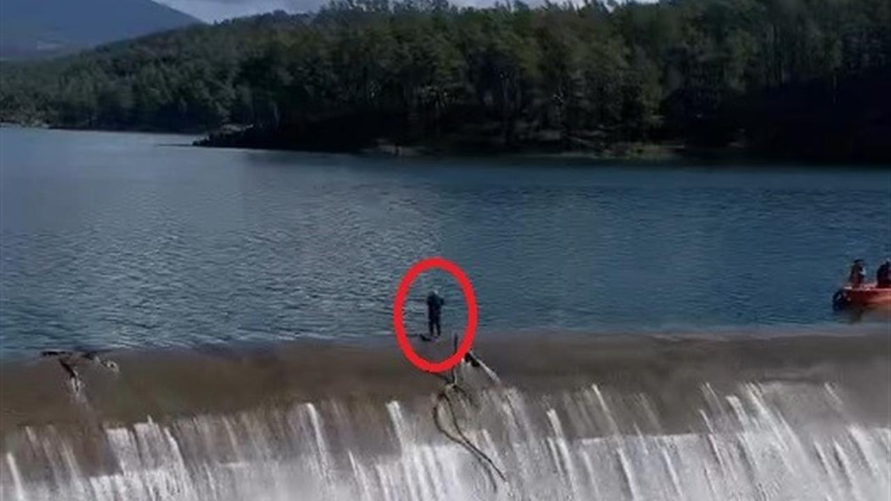 Antalya'nın Kumluca ilçesinde Alakır Barajı'nda alabalık üreten Nuri Yurtseven, dolu savakta biriken çalı ve ağaçları temizledi. Tekneyle başlayan temizlik çalışması, yürüyerek devam etti. Yurtseven, cep telefonuna yansıyan görüntülerde yaşanan tehlikeye rağmen, "Öyle tehlikeli bir durum yok. Asayiş berkemal" açıklamasında bulundu.