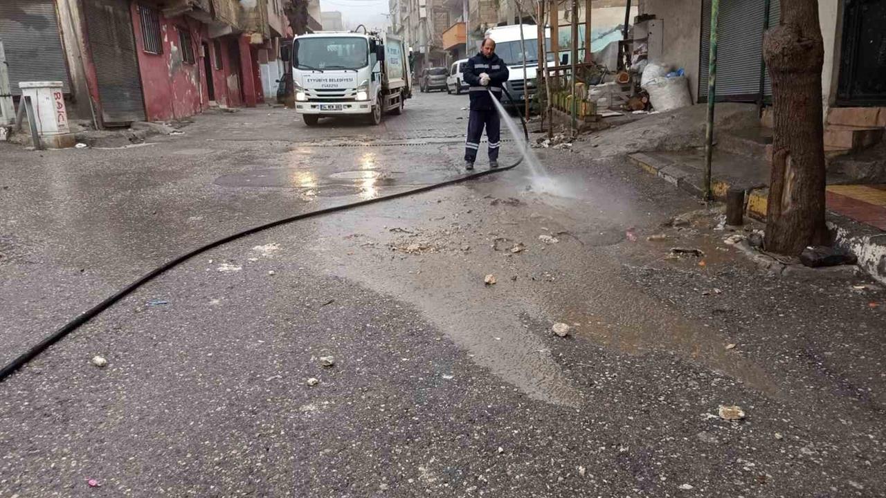 Şanlıurfa'nın Eyyübiye ilçesinde, meydana gelen sel baskınlarının ardından belediye ekipleri temizlik çalışmalarını aralıksız sürdürüyor.
