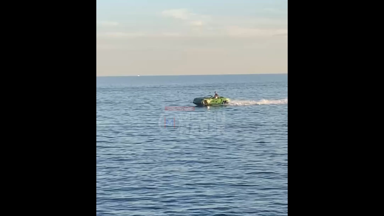 Mersin Çarşı Sahili kıyısında kaydedilen görüntülerde, yeşil renkli otomobil görünümlü bir teknenin denizde yüksek hızla ilerlediği görüldü. Sürat teknesi yapısında olduğu anlaşılan araç, kıyıya yakın bir noktadan geçerken sahilde bulunan vatandaşların ilgisini çekti.