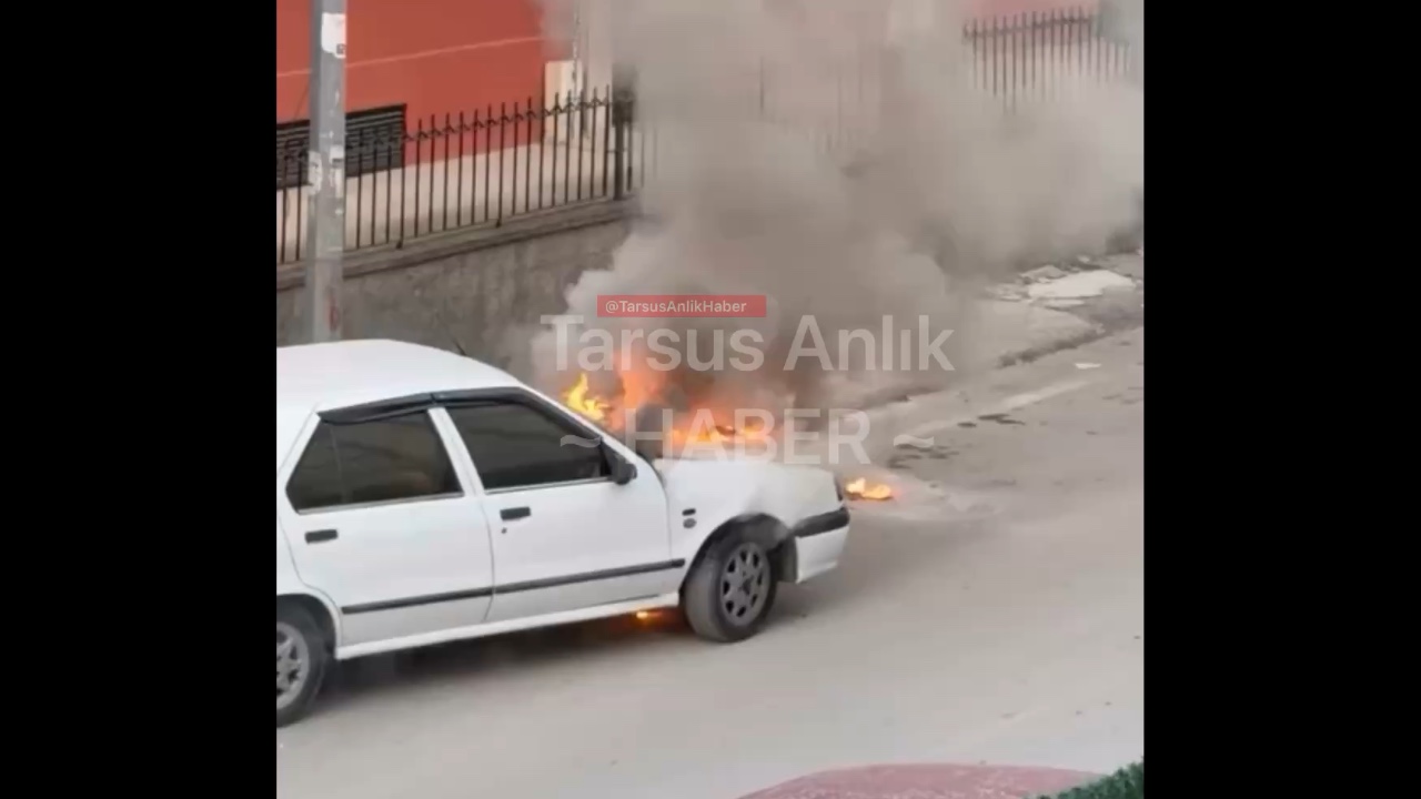 Tarsus Anıt Mahallesi'nde sabah saatlerinde seyir halindeki bir otomobil, motor kısmından dumanlar çıkmaya başladı. Görüntülerde, sürücünün hemen aracı yol kenarına çekip dışarı çıktığı anlar yer alıyor. Kısa sürede büyüyen alevler otomobili sardı. Olay yerine gelen itfaiye ekipleri yangını söndürmek için çalışma başlattı.