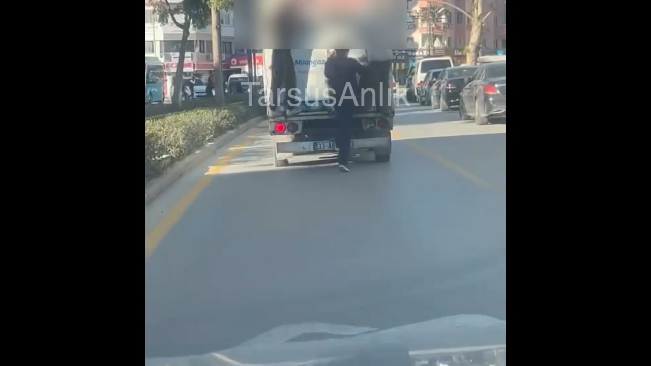 Olay, Tarsus ilçesi Şehitmustafa Mahallesi Muvaffak Uygur Caddesi üzerinde gerçekleşti. Trafikte normal seyir halindeki tüp dolu bir kamyoneti gören iki genç, aracın arkasına asılarak uzun bir mesafe boyunca yol aldı. Ancak, sadece asılmakla kalmayıp birbirlerine iterek şakalaşmaları durumu daha da tehlikeli hale getirdi.